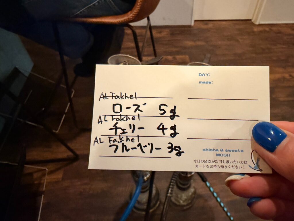 千葉県流山市にあるMOSH流山おおたかの森店は、秋葉原駅からつくばエクスプレスで約30分と都内からのアクセスも良好な、ゆったりと過ごせるシーシャカフェ。特にシーシャ初心者の方も大歓迎。日替わりミックスシーシャをはじめ、お客さんのその日の気分にぴったりのシーシャを提供していますので、ぜひ一度MOSH流山おおたかの森店にいらしてみてください。今回特集したローズなどのフローラル系に強いスタッフもいるので、ぜひローズ談義に花を咲かせましょう!