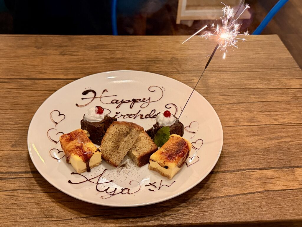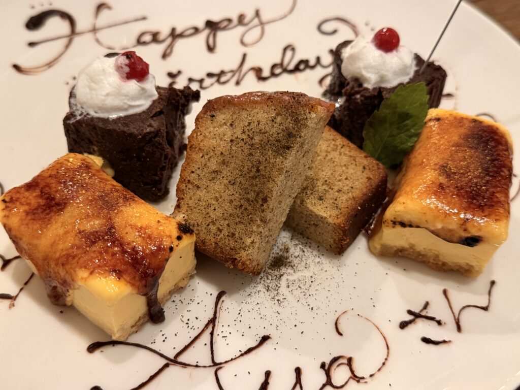 こんな3種類のデザートを一同に食べ比べできるなんて、贅沢すぎるプレートです。これは誕生日に限らず、ちょっとした記念日や複数人での来店時にオーダーしても◎なのでは、と思いました。