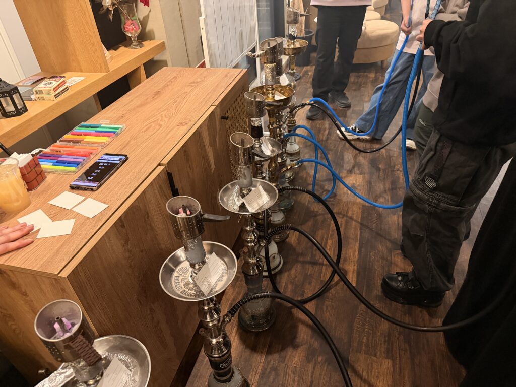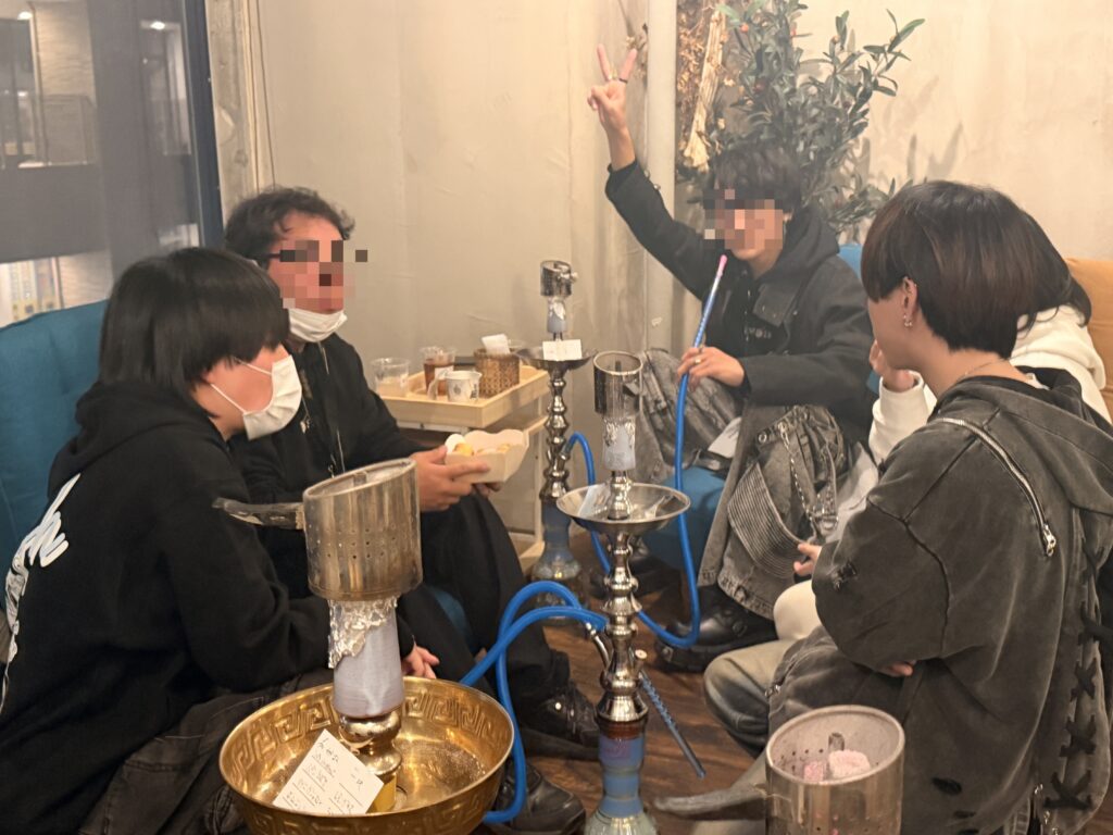 美味しいシーシャを吸いながら、カードに少しずつ穴が空いていきます。段々とリーチになった人もちらほら!
