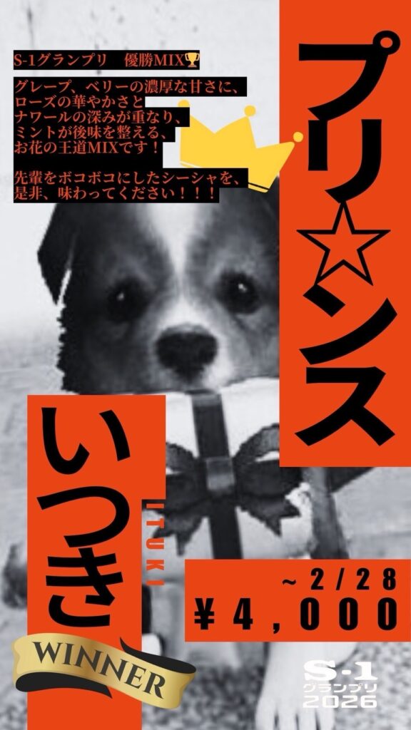 また、今回S-1グランプリで優勝したいっちーさん作のミックスシーシャは、2月いっぱいの期間限定で販売提供されるとのこと!イベント当日に参加できなかった人も、リピートしてじっくり味わいたい人も、この機会にぜひいっちーさんのスペシャルシーシャを吸ってみてくださいね。